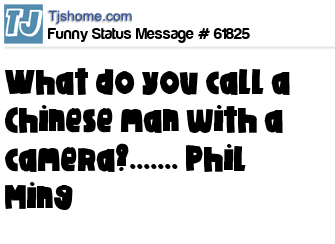 X what do you call a Chinese man with a camera?....... Phil Ming