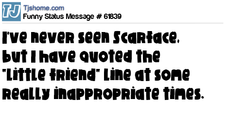 X I've never seen Scarface, but I have quoted the "little friend" line at some really inappropriate times.