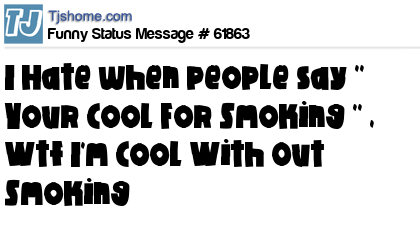 X is I Hate when people say '' Your Cool For Smoking '' , Wtf I'm Cool With Out Smoking