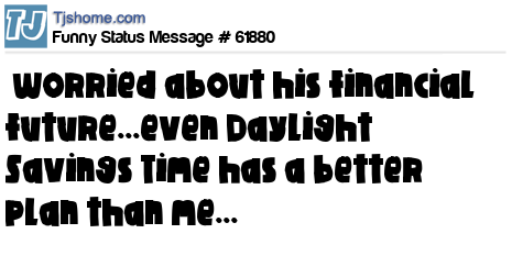 X is  worried about his financial future...even Daylight Savings Time has a better plan than me...