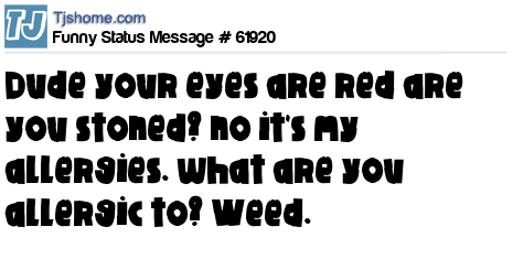 X is dude your eyes are red are you stoned? no it's my allergies. what are you allergic to? Weed.