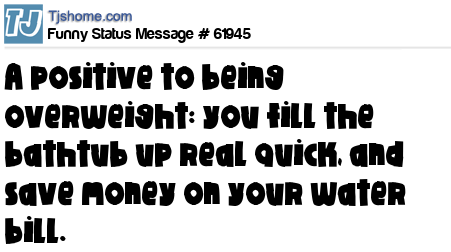 X says A positive to being overweight: you fill the bathtub up real quick, and save money on your water bill.