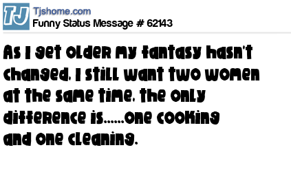 X As I get older my fantasy hasn't changed, I still want two women at the same time, the only difference is......one cooking and one cleaning.