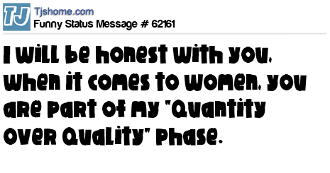 X is I will be honest with you, when it comes to women, you are part of my "Quantity Over Quality" phase.