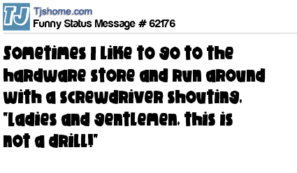 - # 81597 Sometimes at work I like to run around with a screwdriver yelling "ladies and gentlemen, this is not a drill!