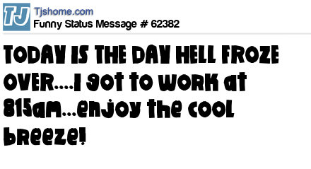 X is TODAY IS THE DAY HELL FROZE OVER....I got to work at 815am...enjoy the cool breeze!