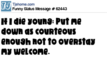 X If I die young: Put me down as courteous enough not to overstay my welcome.