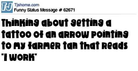 X Thinking about getting a tattoo of an arrow pointing to my farmer tan that reads "I work"