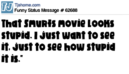 X is that Smurfs movie looks stupid. I just want to see it, just to see how stupid it is."