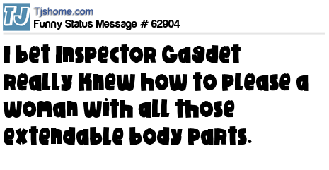X I bet Inspector Gagdet really knew how to please a woman with all those extendable body parts.