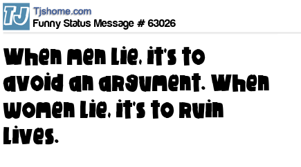 X When men lie, it's to avoid an argument. When women lie, it's to ruin lives.