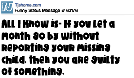 X is All I know is- If you let a month go by without reporting your missing child, then you are guilty of something.