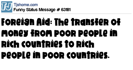 - # 205779 Foreign aid, taking money from poor people of a rich country and giving it to the rich people of a poor country.