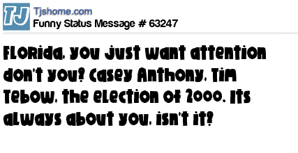 X says Florida, you just want attention don't you? Casey Anthony, Tim Tebow, the election of 2000. Its always about you, isn't it?