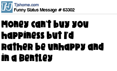 - # 62427 Money can't buy you happiness. But I'd rather be unhappy in a Bentley.