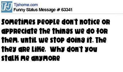 X is Sometimes people don't notice or appreciate the things we do for them, until we stop doing it. The they are like, “Why don't you stalk me anymore”