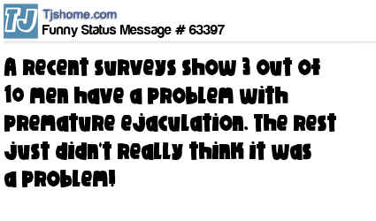 - # 32956 Recent surveys show 3 out of 10 men have a problem with premature ejaculation. The rest of us just don't think it's a problem.