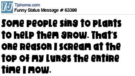 X  Some people sing to plants to help them grow. That's one reason I scream at the top of my lungs the entire time I mow.