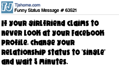 - # 91767 If your girlfriend claims to never look at your Facebook profile, change your status to "single" and wait 5 minutes