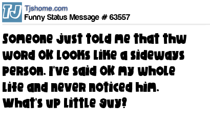 - # 46544 The word OK looks like a sideways person. I've said OK my whole life and never noticed him. What's up little guy?