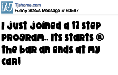 X is I just joined a 12 step program.. Its starts @ the bar an ends at my car!