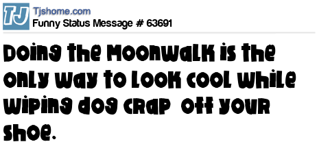 - # 208928 I can't dance to save my life, but when I step in dog crap, I can moonwalk better than Michael Jackson.