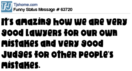 X says It's amazing how we are very good lawyers for our own mistakes and very good Judges for other people's mistakes.