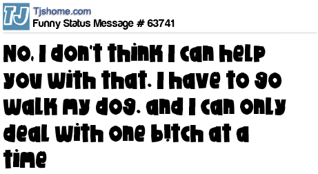 X no, I don't think I can help you with that. I have to go walk my dog. and I can only deal with one b!tch at a time