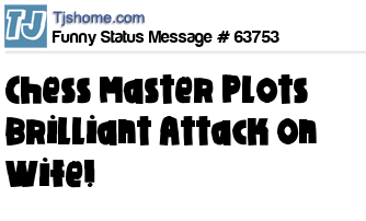 - # 144587 I was playing Chess today. I beat my wife. Then I went back to playing chess.