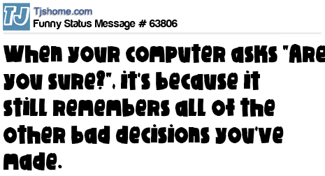 X When your computer asks "Are you sure?", it's because it still remembers all of the other bad decisions you've made.