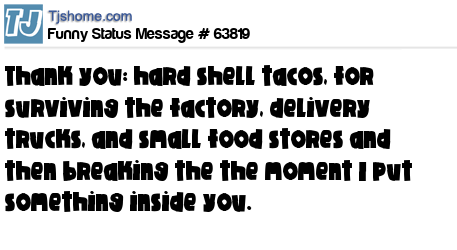X Thank you: hard shell tacos, for surviving the factory, delivery trucks, and small food stores and then breaking the the moment I put something inside you.