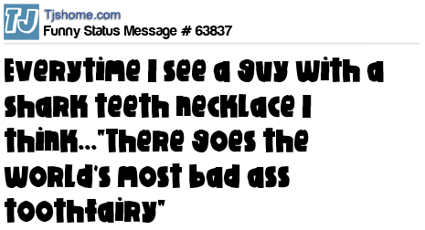 X  Everytime I see a guy with a shark teeth necklace I think..."There goes the world's most bad ass toothfairy"