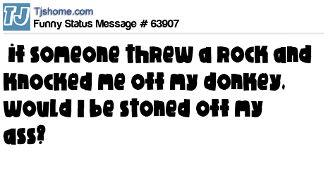 - # 19648 Random thought of the day: If someone threw a rock and knocked you off your donkey, would you be stoned off your ass?