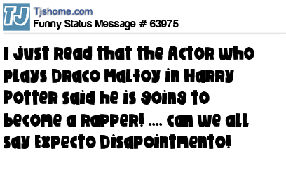 X says I just read that the Actor who plays Draco Malfoy in Harry Potter said he is going to become a rapper! .... can we all say Expecto Disapointmento!