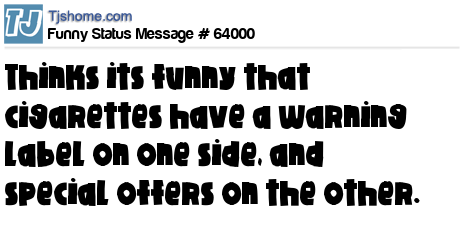 X  Thinks its funny that cigarettes have a warning label on one side, and special offers on the other.