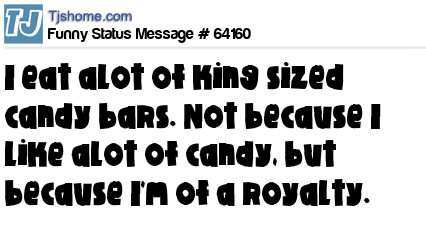 X says I eat alot of king sized candy bars. Not because I like alot of candy, but because I'm of a royalty.