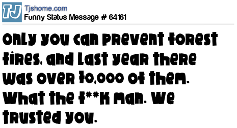 X Only you can prevent forest fires, and last year there was over 70,000 of them. What the f**k man. We trusted you.