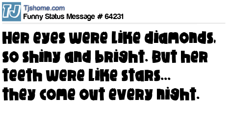X is Her eyes were like diamonds, so shiny and bright. But her teeth were like stars... they come out every night.