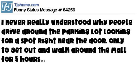 X says I never really understood why people drive around the parking lot looking for a spot right near the door, only to get out and walk around the mall for 5 hours...