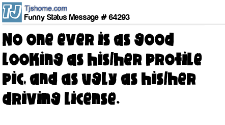X No one ever is as good looking as his/her profile pic, and as ugly as his/her driving license.