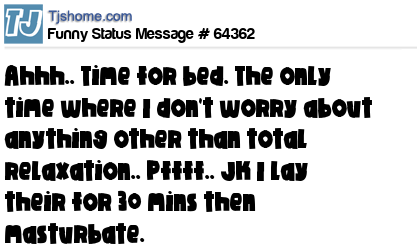 X is Ahhh.. Time for bed. The only time where I don't worry about anything other than total relaxation.. Pffff.. Jk I lay their for 30 mins then masturbate.