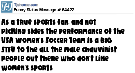 X says as a true sports fan, and not picking sides the performance of the USA Women's Soccer Team is a BIG STFU to the all the male chauvinist people out there who don't like women's sports