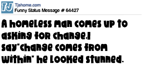 - # 70533 A homeless man comes up to me asking for change, I say "Change comes from within." He looked stunned.