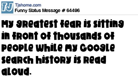 - # 66152 My greatest fear is standing on stage in front of millions while my Google search history is read aloud...