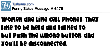 - # 64153 "Women are like cell phones, they love to be held, they love to be talked to, but if you push the wrong button, you'll be disconnected,"!