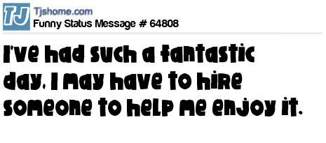 X I've had such a fantastic day, I may have to hire someone to help me enjoy it.
