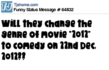 X is will they change the genre of movie "2012" to comedy on 22nd Dec, 2012??