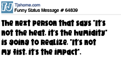 - # 105374 The next person who says its not the heat, it's the humidity will learn its not my fist, it's the impact.