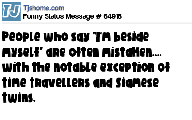 X is People who say "I'm beside myself" are often mistaken.... with the notable exception of time travellers and Siamese twins.