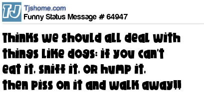 X thinks we should all deal with things like dogs: if you can't eat it, sniff it, or hump it, then piss on it and walk away!!